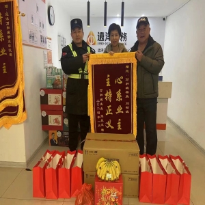 你用心地服務? 我真誠地感謝? ? ? 昨日,業主王先生送來一面錦旗,還送來了牛奶、水果等慰問品,真誠地感謝夜班保安員劉松波同志的用心服務。? ? ?保安員的根本宗旨,就是全心全意