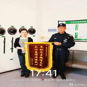 服務好不好 口碑最重要4月23日,秦女士到市民中心三樓辦理業務,不慎將背包丟失,包內各類證件,鑰匙、銀行卡及現金,安保隊長高豐艷在巡邏過程中撿到,于24日將丟失物品歸還給秦女士,25日下午秦女士專程送來錦旗對市民中心安保人員的高尚品德表示
