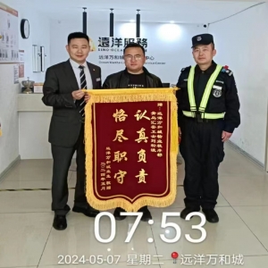 巡邏不僅僅是“打點”5月1日晚21:30分左右,秩序部巡邏員劉松波巡查地下車庫時,發現452號車主車窗未關,上前檢查發現,車里并無人員且車座上留下了類似貴重物品,該巡邏員立即撥打了車主電話,并在車旁等候,直到車主趕到才離開。幾天以后,該業主送來了一面